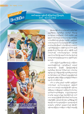 图①② 因地震受伤的病人被安置在内比都千床医院的空旷区域 �ုန််�မံာတော်��ဝန််ကြိ�ီ�ဌာာန် တာာဝန််�ိုသူူ� လာ�်�ိုတာဲင်် အတော်တာဲ�အကြား�ံ�