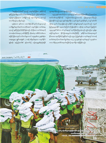 日,工作人员在缅甸仰光国际机场搬运援助物资 新华社 图