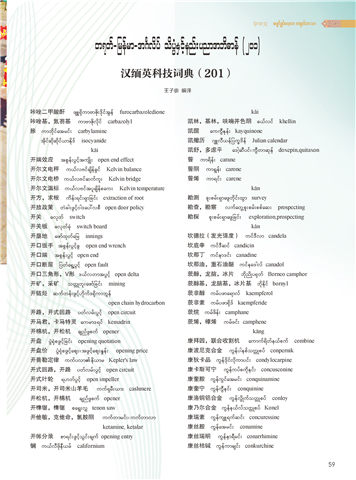 开路,开式回路 �တာ်လာမံ်��ဲင်� open circuit 莰烷 �မံ်ဖွဲ့ုန််� camphane