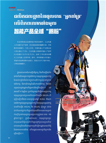 ឯផ�ិតកម្មីម្ម�ស្សាសយ�ឧស្សាាហកម្ម �ិងម្ម�ស្សាសយ�ាដោស្សាវាកម្ម ី 在第五届消博会上傲鲨智能展示的外骨骼机器人 新华社 图
