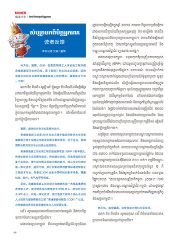 工程技术专业。配备近 2000 台套中国研制的教学设备,覆盖 បដោ�កវ ិ ទាដោម្មកា�ត�ិក �ិងវ ិ ស្សាើកម្មីទំនាកទ�ងទដោ�ើប ��ទទ�
