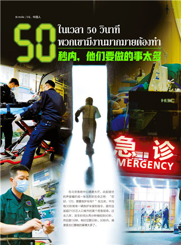 Hi ชาวจ่น / Hi,中国人 ในเวลา 50 วนาทิ ่ ิ ่ พัวกเขามงานมากมายต้้องทิำา 秒内,他们要做的事太多 在北京急救中心调度大厅,此起彼伏 的声音编织成一张无形的生命之网:“您 好,120,需要救护车吗?”在北京,平均 每30秒就有一辆救护车接到指令,驶向这 座超2100万人口城市的某个危急现场。过 去几年,派车时间从两分钟缩短到90秒, 然后是1分钟,有时仅需50秒。50秒内,调 度医生们要做的事情太多了。 46
