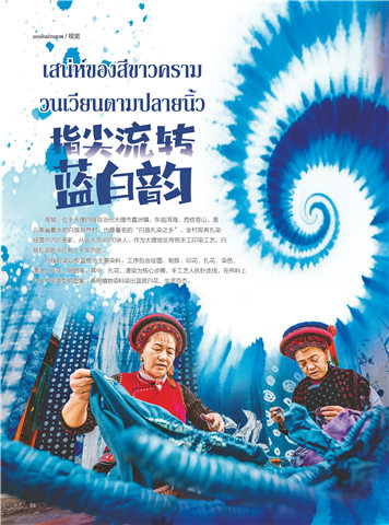 白族扎染以板蓝根为主要染料,工序包含绘图、制版、印花、扎花、染色、