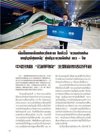 9 月,一趟承载特殊使命的列车从昆明出发,沿中老 ຊີີຕູ່າເວັນອອກ້ສິຽງໃຕູ່,ເພົອສິາງພົະລັງຊີີວດໃຫ້ມັໃຫ້ແກ້ ່