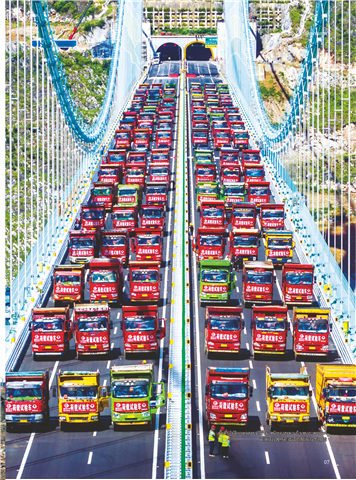 花江峡谷大桥荷载试验现场 新华社 图