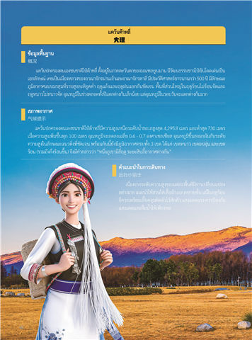 แควนัปกครองต์นัเองชนัชาต์ไป๋ต์าหล ต์�งอยูในัภาคต์ะวนัต์กของมณฑลยูนันัานั ม่วฒนัธ์รรมชาวไป๋อนัโดดเดนัเป็นั