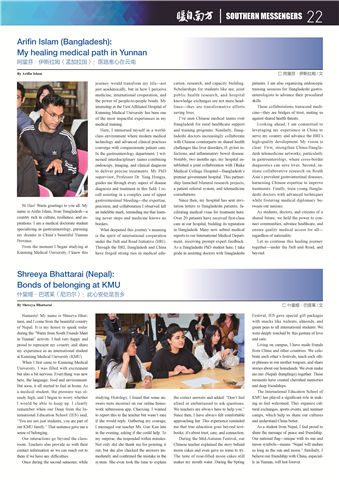 my dreams in China’s beautiful Yunnan is the spirit of international cooperation reports to our International Medical Depart- regardless of nationality.
