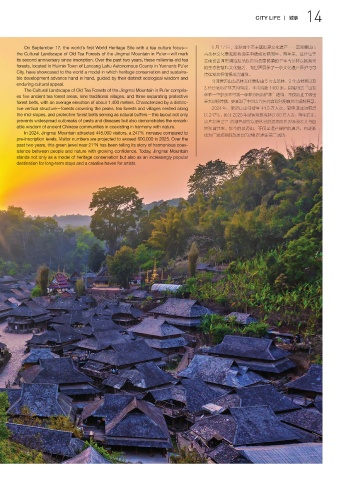 able wisdom of ancient Chinese communities in coexisting in harmony with nature. 然和谐共生。如今的景迈山,不仅是遗产保护的典范,也逐渐