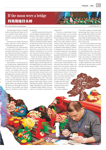holiday in both China and Vietnam. In Chi- At the Mid-Autumn Festival-Themed ba- “The moon is a cultural bridge,” he said. sprouted along Hanoi’s streets. Even in the