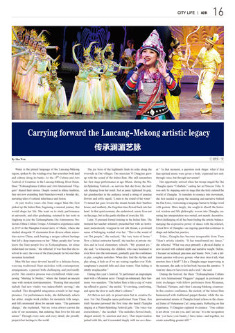 joyful. Her creative process was crystallized while com- During this year’s festival, Yi performed an impromptu During the festival, the three “Xishuangbanna Culture
