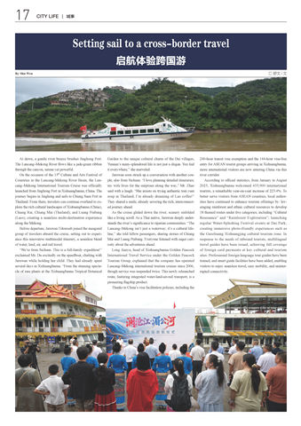 several days in Xishuangbanna. “From the stunning specta- Lancang–Mekong international tourism cruises since 2006, visitors to enjoy seamless travel, easy mobility, and uninter-